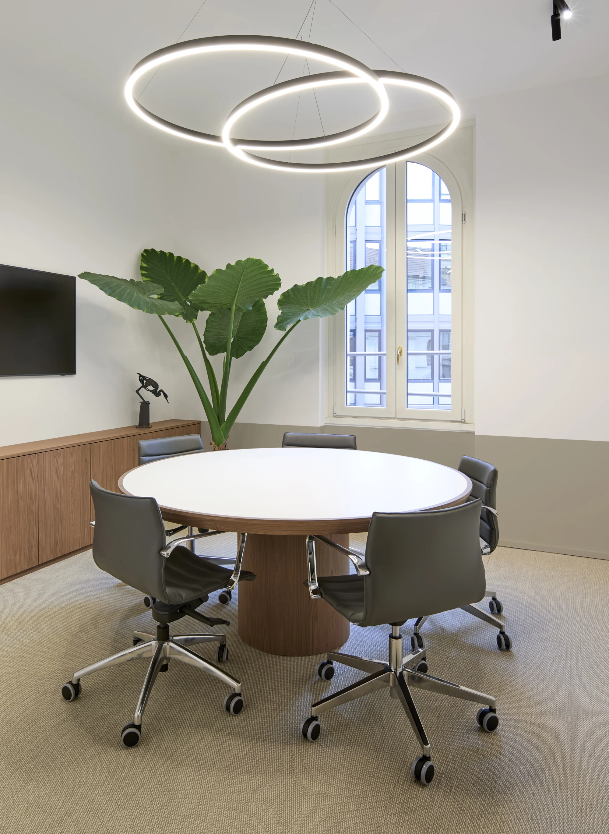 The renovation of the ColonnaCaramanti Law and Tax Firm's headquarters focused on creating functional and refined spaces, where light and transparency play a key role. The design approach emphasized a clean layout, aiming to optimize space and ensure a smooth and efficient workflow.