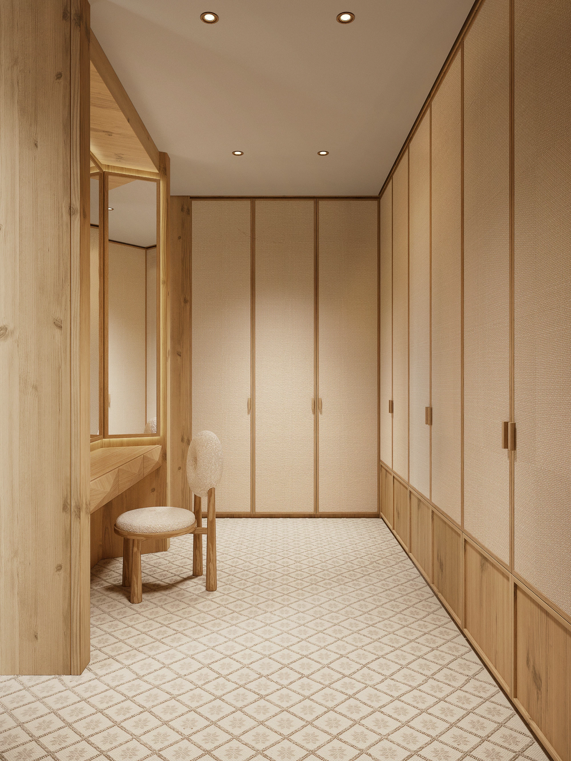 Inspired by Casa Garelli by Carlo Mollino, a 1664 granary transformed into a vacation home, the suite captures the harmony between vernacular architecture and modernity. Distinctive elements such as the "bolero" (a mushroom-shaped detail for protection), the ribbon window, and Blokbau flooring are reinterpreted with a contemporary twist.