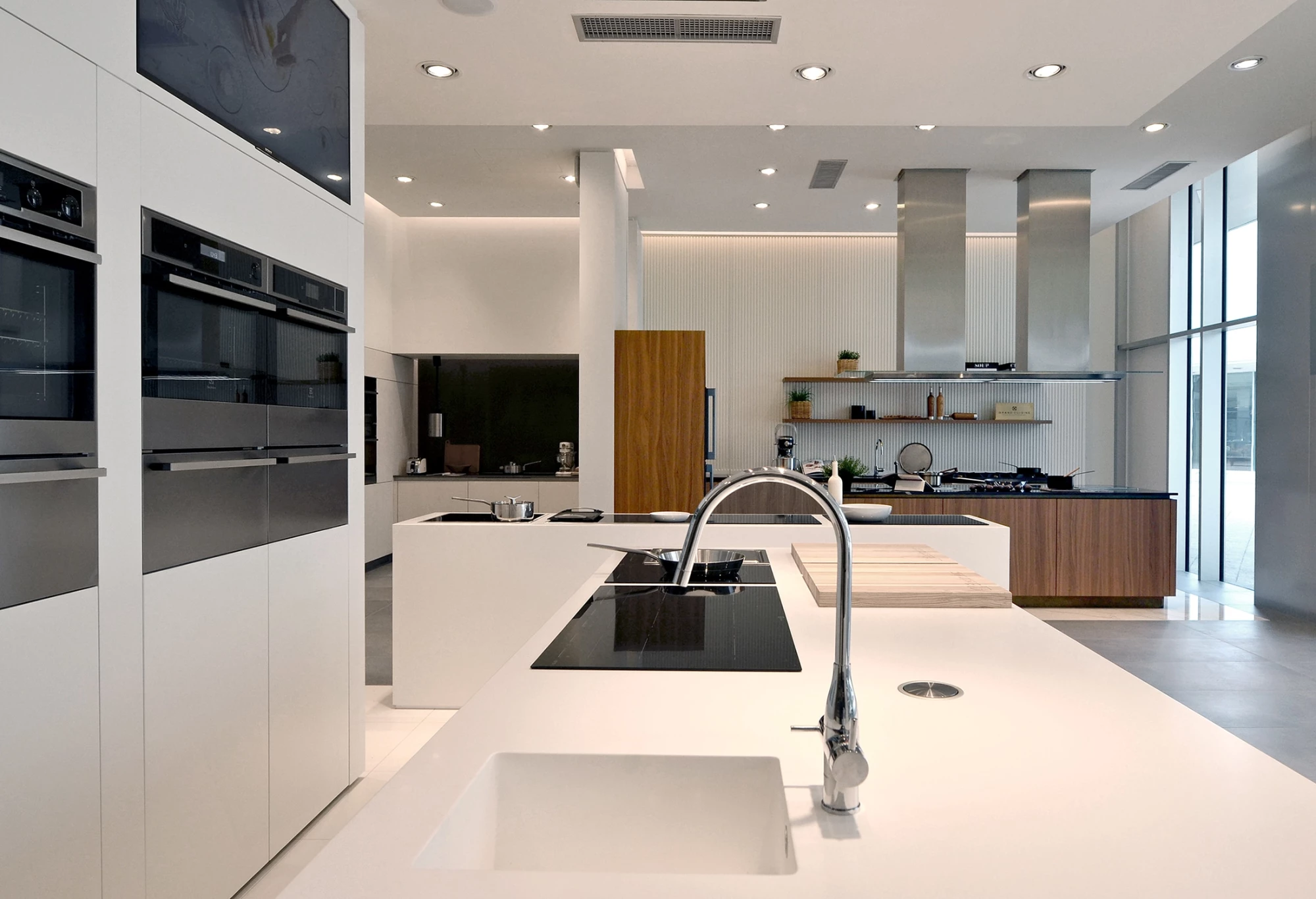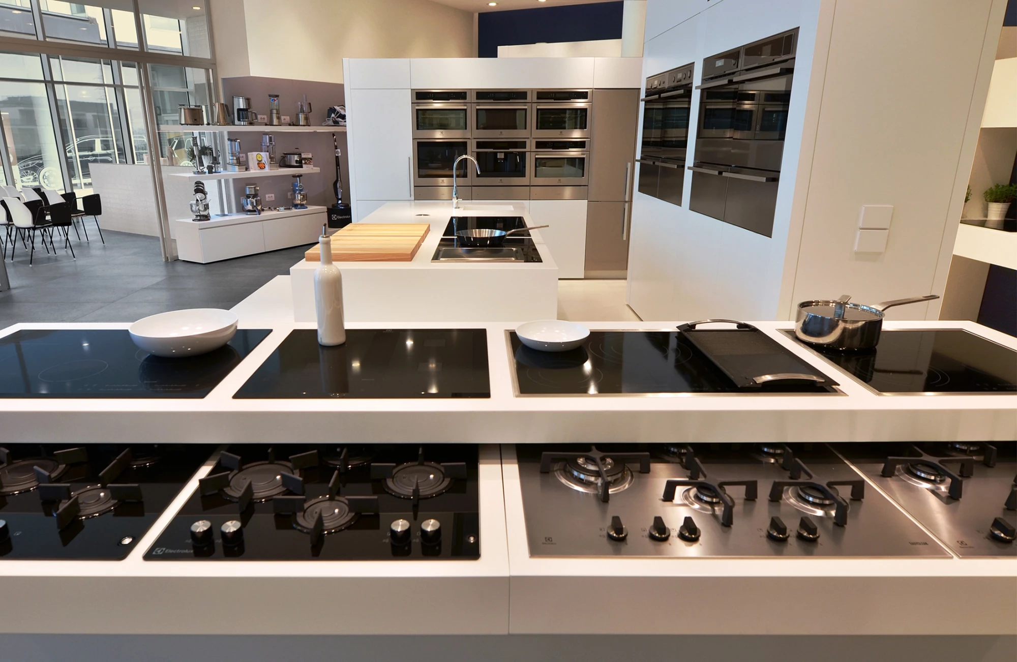 BBA Studio designed the milanese Showroom for Electrolux, we worked with the aim of finding the key for the display of a mix of products. The goal was achieved with a linear design with some well calibrated highlight points.