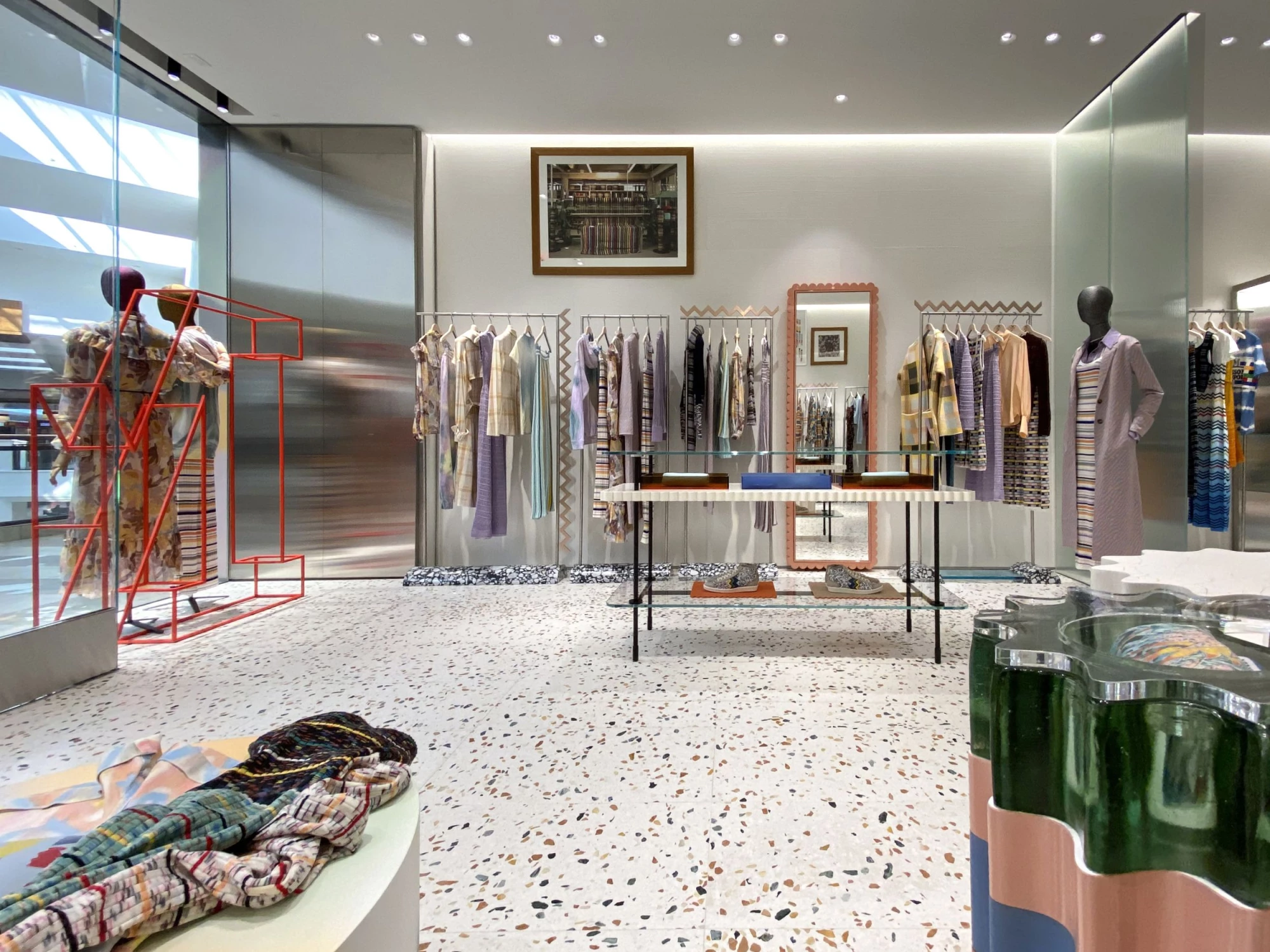 The studio accepted Missoni's challenge to design the new concept for its global boutiques. The new look aims to create a family environment that conveys the brand's values: the shapes, colors, and sustainable materials of the furnishings reflect the playful character of the collections, while the terrazzo floor adds freshness to the space. A play of transparencies with glass panels stimulates curiosity, highlighting the usefulness of the chosen materials.